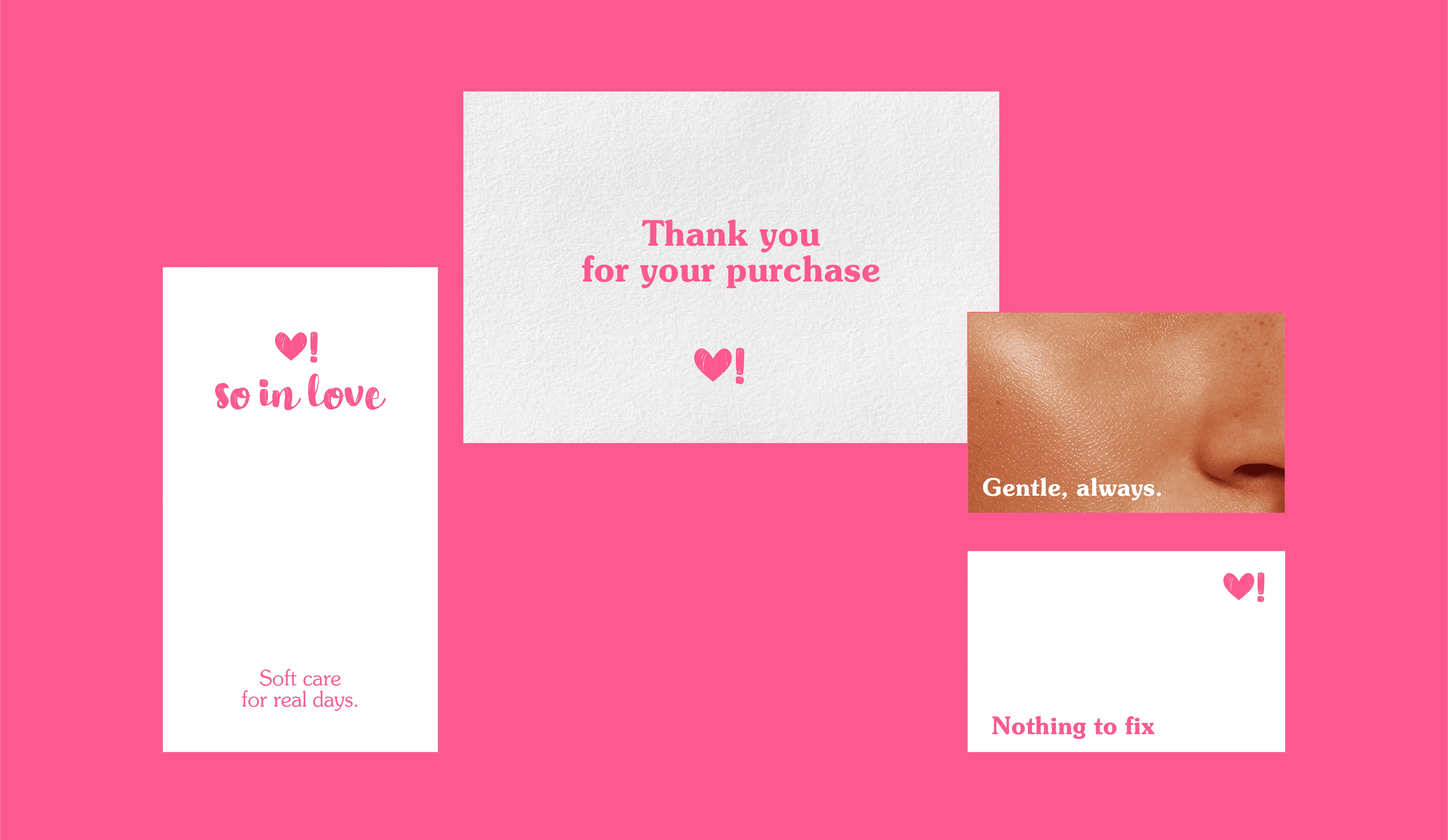 Then we translated this thinking into a visual identity that carries the same softness. We built a warm, approachable system grounded in clarity and trust, treating skincare as quiet companionship that fits naturally into everyday life.