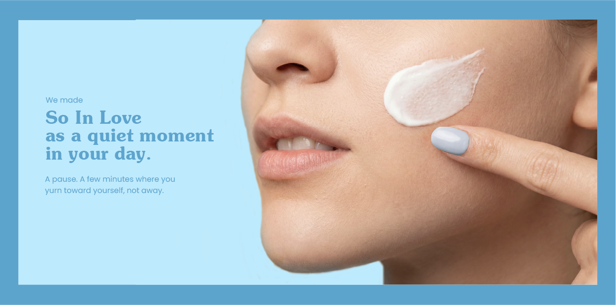 So In Love is a skincare brand focused on everyday care, entering a space often defined by results, routines, and rigid ideas of self-improvement. When the brand came to us, it needed a clearer emotional point of view to stand apart in a crowded, outcome-driven category.